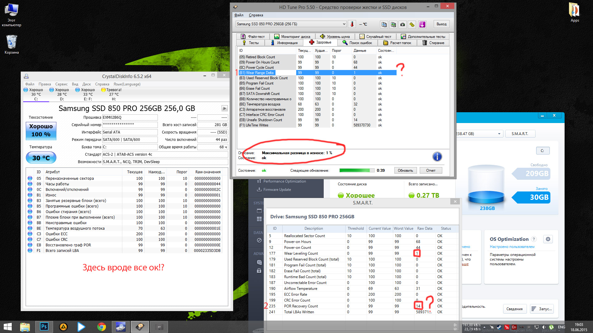Подскажите насчет двух параметров, значения POR Recovery Count (Это небезопасные выключения?), а wear range delta что такое? гуглил, мнения разделились, что функция и должна увеличиваться т.к делает равномерный износ диска, а второе показывает, что диск наоборот "умирает", хмм.....