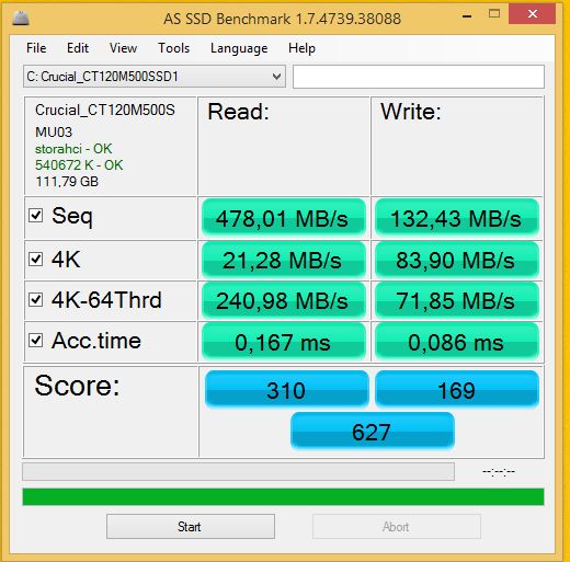 нет,замена драйвера вообще ничего не даёт, в данном случае просто пока вы их меняете проходит время и накопитель сам по себе восстанавливается, я попадался на эту удочку десяток раз, прогоните тест раз 5 подряд - скорость обязательно упадёт... Этот накопитель как нарочно восстанавливает скорость лиш на 4-5 гигов, что хватает ровно на 1 прогон теста AS SSD, уже на втором прогоне скорость падает вдвое, на третьем в 20 раз ... до 5мб/сек Так или иначе спасибо за научную информацию(результаты тестов)