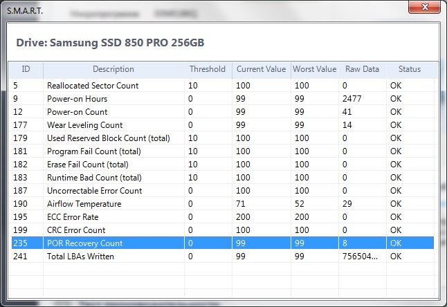 BSOD и последующая, за ним, перезагрузка - это, как раз, и есть внезапное отключение питания. Ждать, или не ждать, а событие уже произошло. И в S.M.A.R.T.'е оно будет зафиксировано... This is a count of the number of times this has happened.
