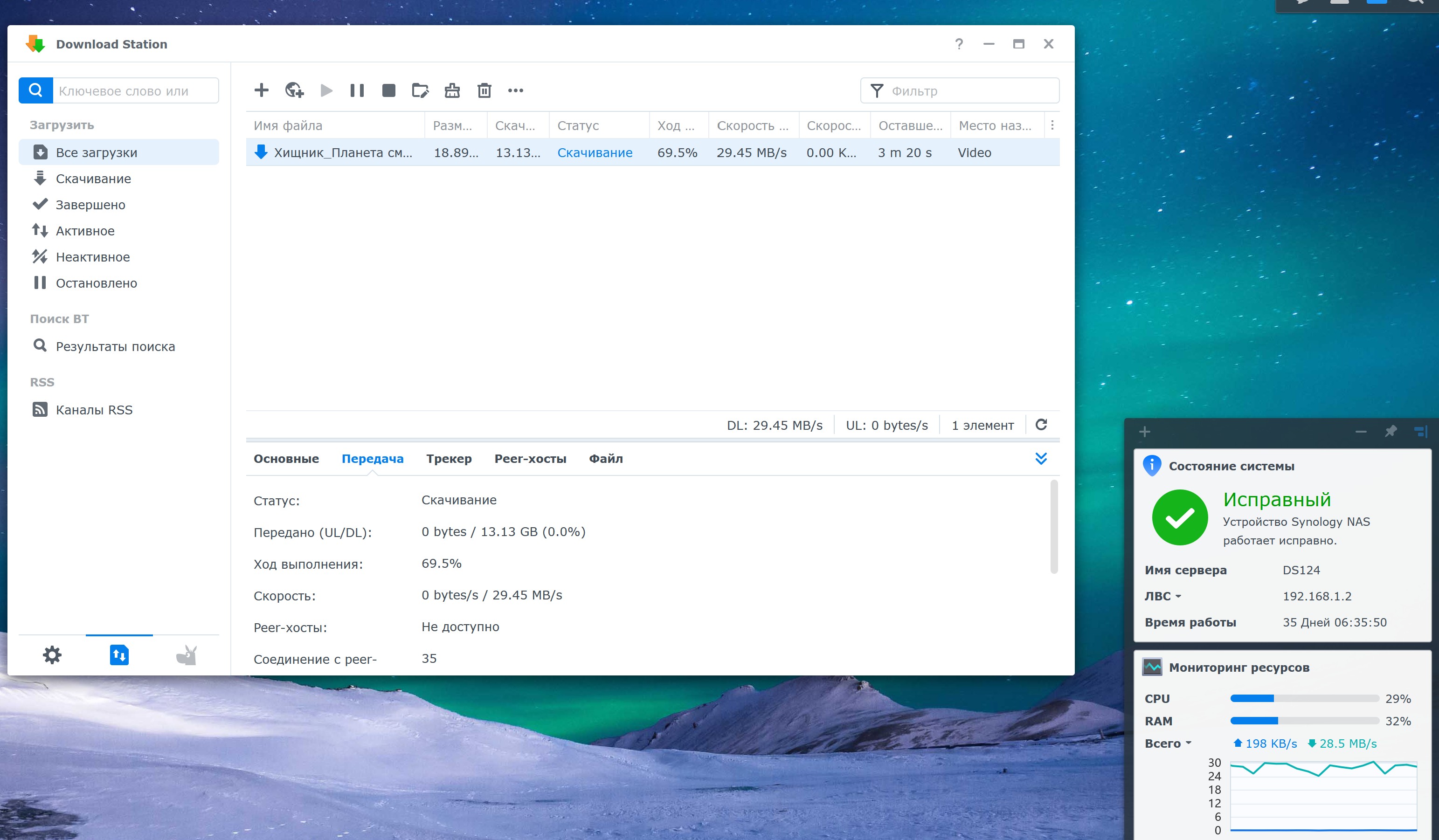 Вы явно не разобрались в вопросе и продолжаете путать теплое с мягким... никаких ограничений на скорость загрузки со стороны железа в этом насе нет. там режет скорость до примерно 30 мб/c (чего все равно будет достаточно для 99% пользователей таких NAS и гораздо больше упоминавшихся вами 100 мбит) стоковое приложение download station и это видно по загрузке проца и памяти из моего второго скрина... А кому недостаточно, т.е. таким как я, то просто можно воспользоваться другой торрент-качалкой (см. первый мой скрин).