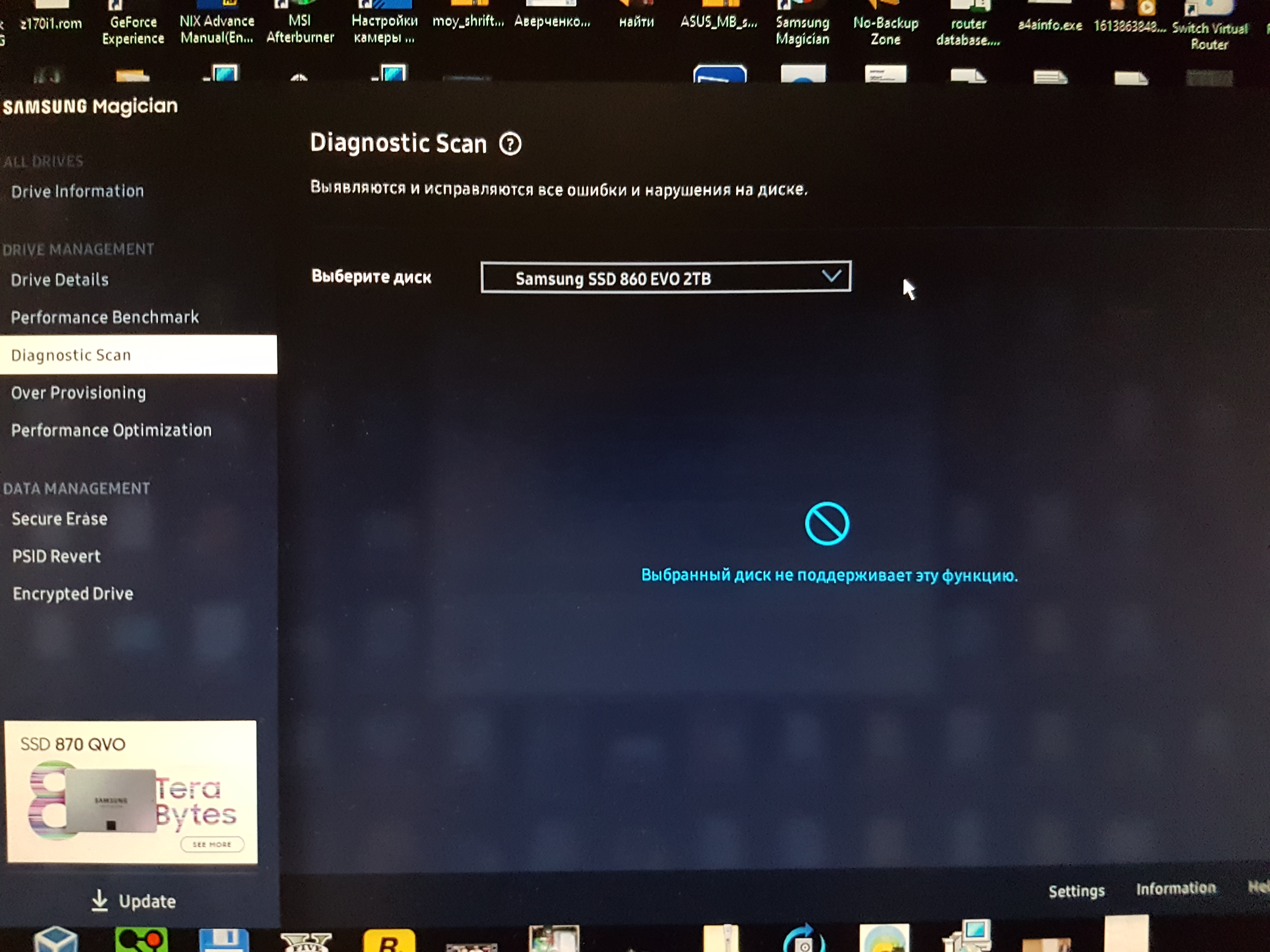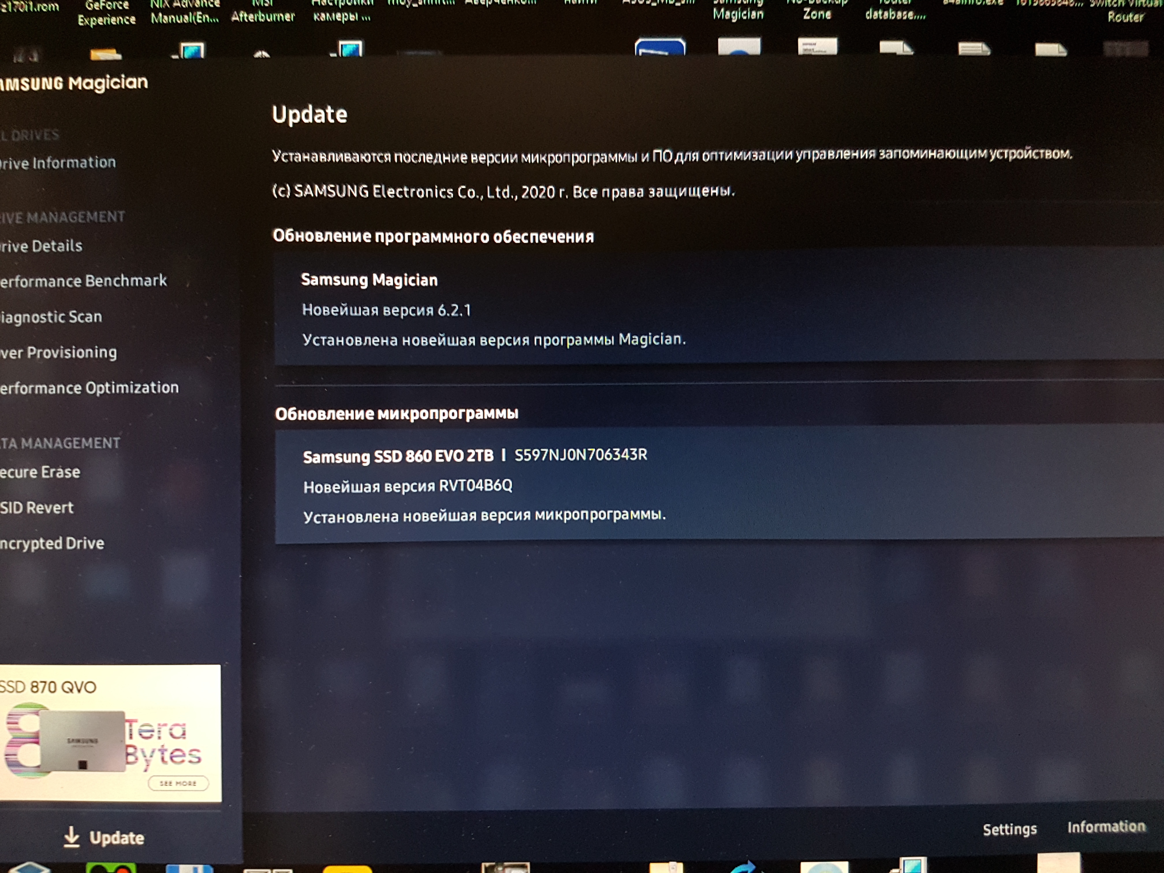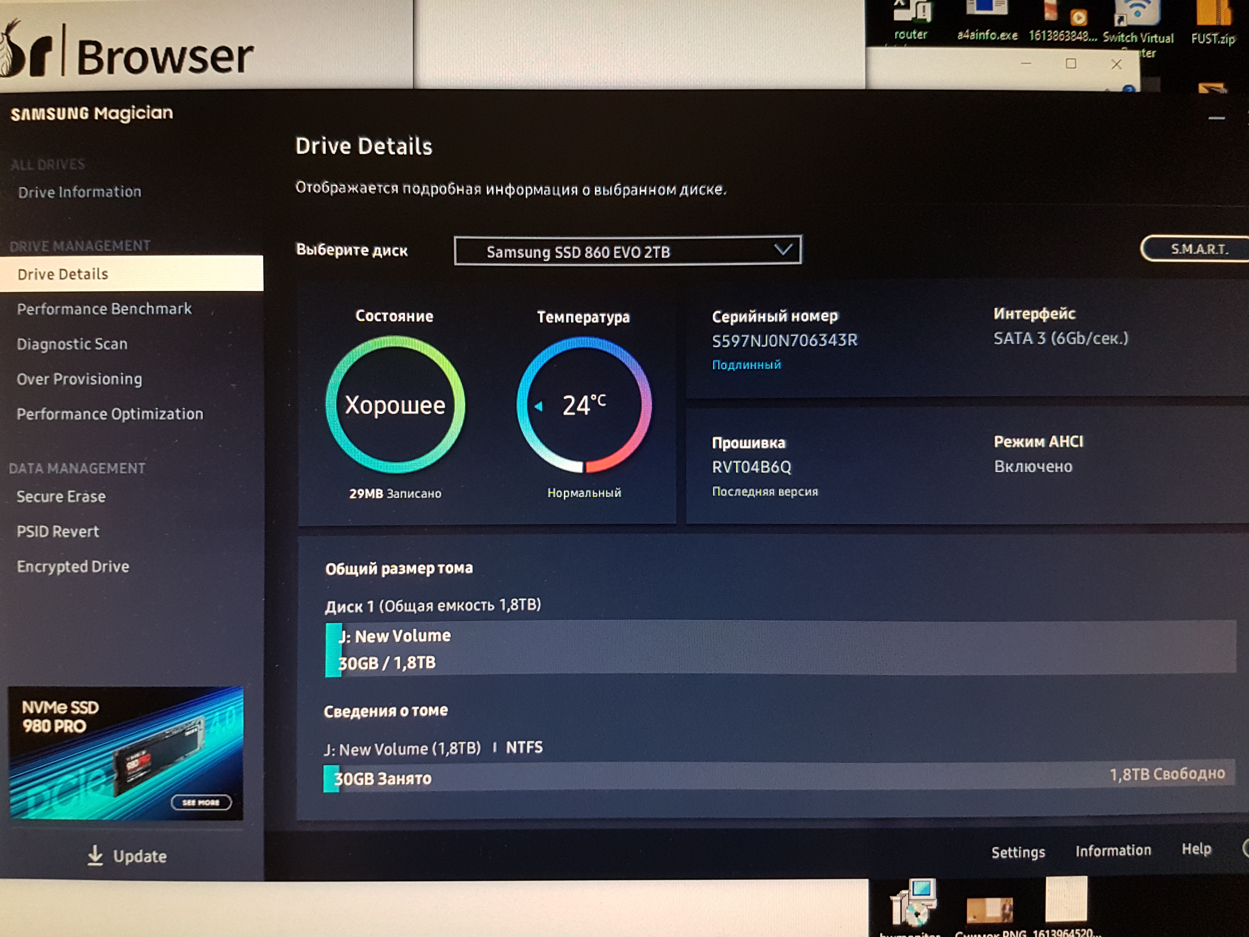Правда теперь у меня новая проблема недоступна ни одна из функций в samsung magician. Orry Понятно, просто продавец заявил что это обыкновенный "полноценный" 860 evo, а значит фирменное ПО должно его поддерживать.