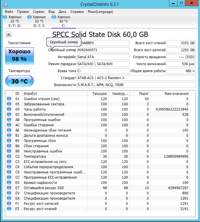 С оговоркой эксплуатации на штатном драйвере msahci (драйвер Intel [он же iaStorA, IRST] на контроллер SATA не ставить): - SmartBuy Ignition 2, GoodRAM C50/100, PQI S522, Corsair Force LS 240 Гбайт**, Patriot Blaze 240 Гбайт*** и прочие Phison-based (контроллер Phison; за полным списком лучше заглянуть в FAQ); Проблема заключается в падении скоростных характеристик на операциях записи. По отзывам, встречается при прошивке версии 7.7. Исправляется обновлением прошивки до версии 7.9 (после чего может потребоваться выполнение Secure Erase).