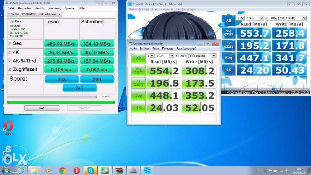Определёный интерес могут представлять новые SSD второй половины 2015 года на TLC NAND (но брать их стоит в объёмах не меньше 240 Гбайт - http://www.overclockers.ru/lab/71280/ob ... .html): - SmartBuy Revival, OCZ Trion 100, Patriot Blast, Kingston UV300 (контроллер Phison PS3110-S10 + 19 нм TLC NAND); - ADATA Premier SP550 (Silicon Motion SM2256K + 16 нм TLC NAND) - медленней Phison PS3110-S10 + 19 нм TLC NAND; - Crucial BX200 (Silicon Motion SM2256 + 16 нм TLC NAND) - быстродействие ещё ниже, чем у ADATA Premier SP550. Нужно учитывать, что эти SSD не рассчитаны на активные операции (2-3-5 и т.д. Гбайт) с большими объёмами данных ибо значительная часть быстродействия обеспечивается небольшим SLC-кэшем - см. обзор, ссылка на который чуть выше.