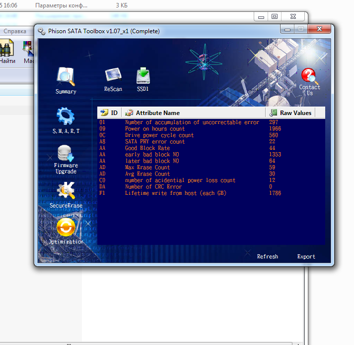 Имеется silicon power s55 на phison. Беда следующая - периодические отвалы диска при загрузке или работе с большим количеством данных. Win грузится нормально, однако пару раз пропадал загрузочный сектор, ресет, и все работало ок. Win 7x64 установлена в начале 11ого года, и пережила 2 переезда. AS SSA периодически не может получить время доступа, ругается что drive01 no access или типа того. Пару раз синька с 0x0000007b Штатный прошивальщик обновить прошивку не может. Что делатЬ: 1. Бежать в гарантию? 2. Попробовать se? 3. Сделать что-то еще? Скрины: