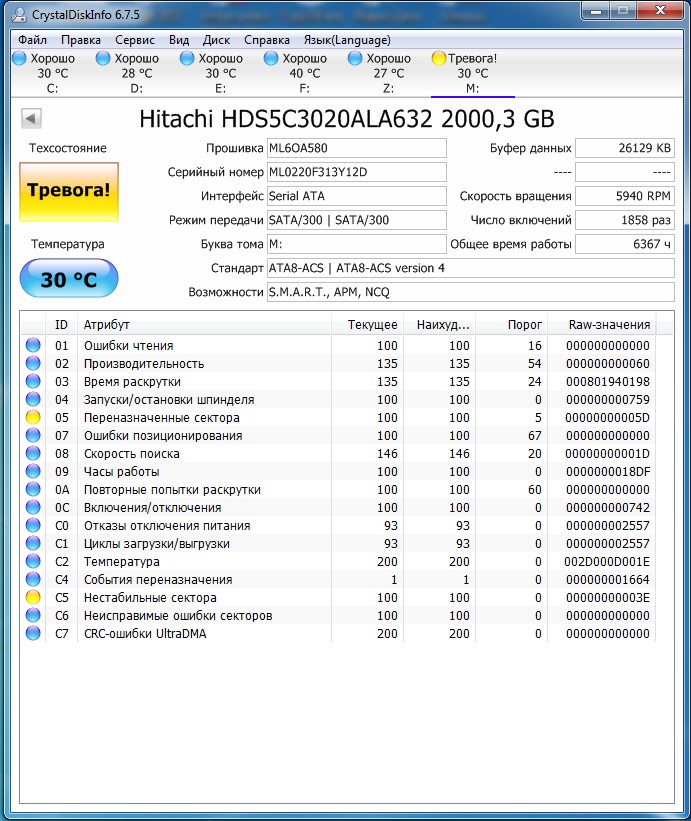 CrystalDiskInfo на данный момент