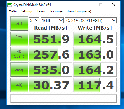 На самом деле результаты зависят от ряда факторов и всё очень просто: - конфигурация системы, на которой проводятся тесты (как аппаратная, так и программная); - конфигурация накопителей (как аппаратная, так и программная).