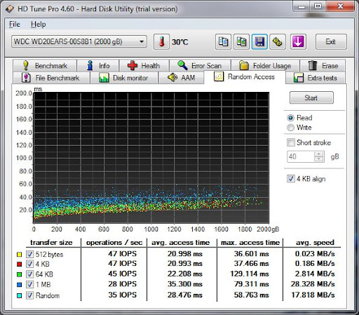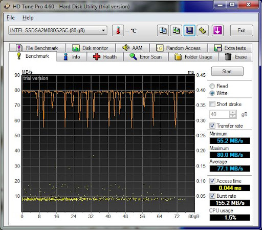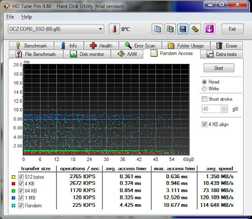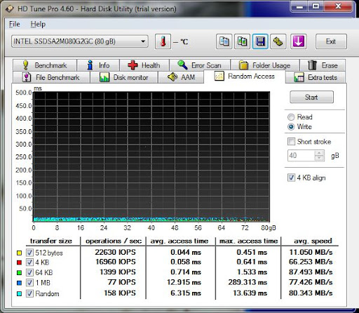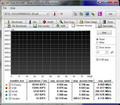 Успокойте про мой ССД. Взял 80ку интел M. Пока просто подключил к старой винде, без форматирования. На линейную скорость чтения и записи претензий особых нет, а вот как начал iops замерять, так на random по чтению непонятные цифры. По записи всё ок: