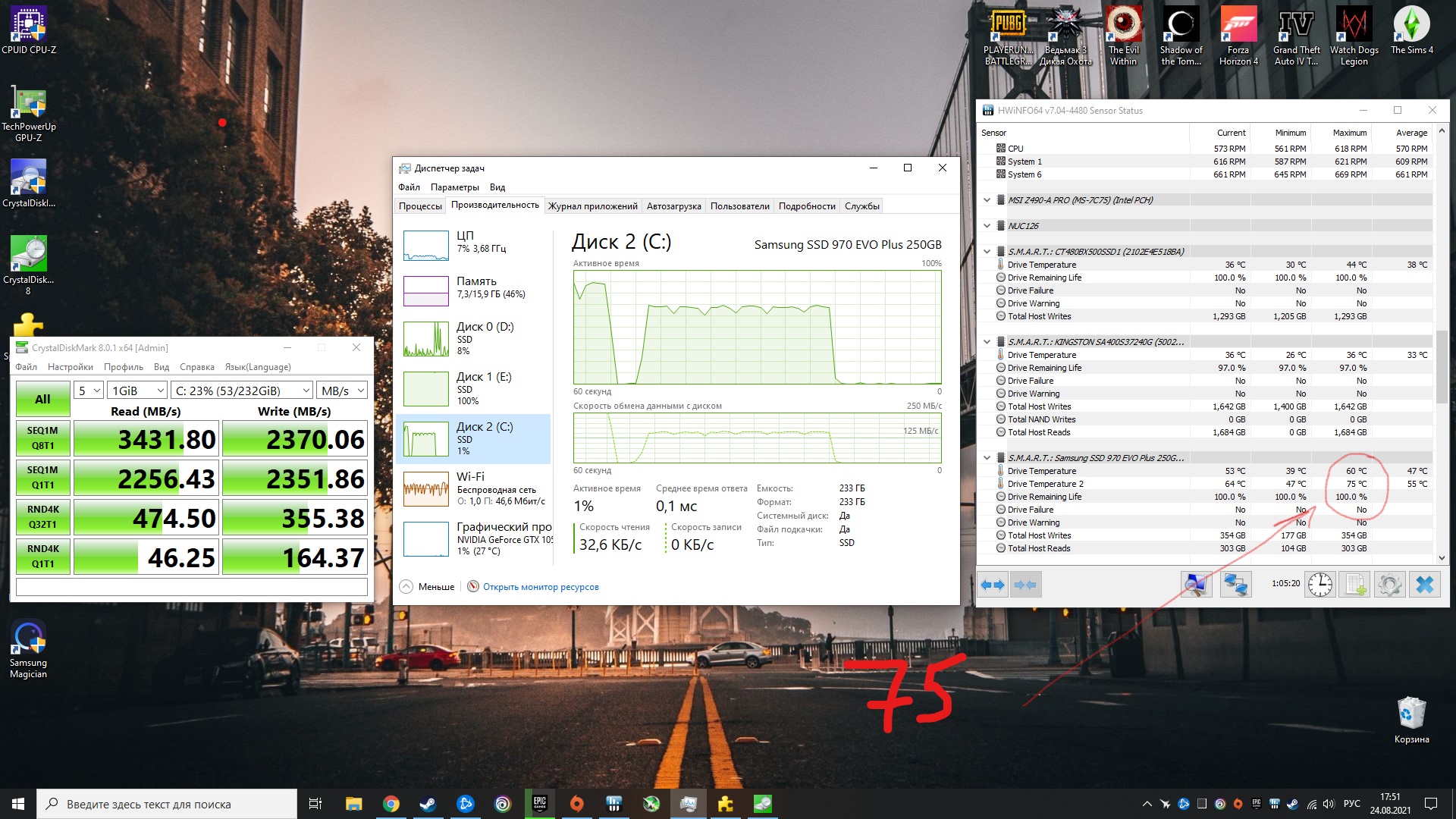5) CORSAIR MP400R2 2тб (Вот тут что-то вообще непонятное, тесты сильно отличаются от других дисков, а ценовой сегмент тот же)