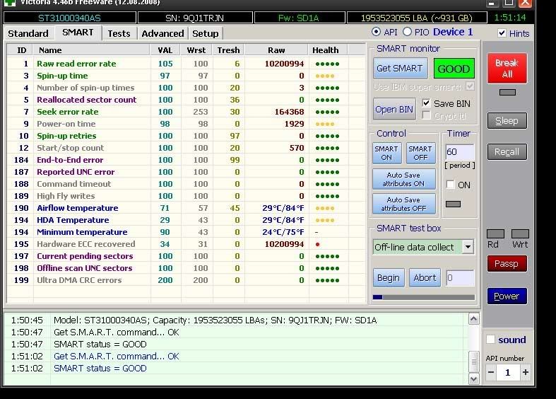 Спасибо огромное форуму, все получилось. Сделал все ка написано, но волнует один момент постоянно растут значения raw read error rate и hardware ECC recovered. Я так понимаю он фиксит постоянно возникающие ошибки. Это нормально ? Подскажите пожалуйста ! скрины 1 - 135 кб 2 -133 кб