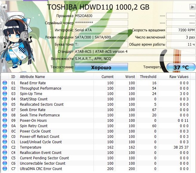 Медленно но стабильно падает на тошке P300 (HDWD110UZSVA) "ничего не значащий" параметр seek performance time (имеющий однако порог). Начиналось всё с где-то 140, только вчера отписывал камраду отзыв о данной железяке, было 113....сегодня 110. Это за пару месяцев где-то, неактивного использования. Будем посмотреть дальше