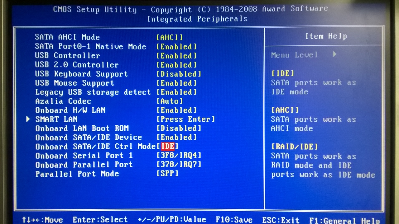 Если правильно понял биос, то у контроллер стоит в режиме IDE.