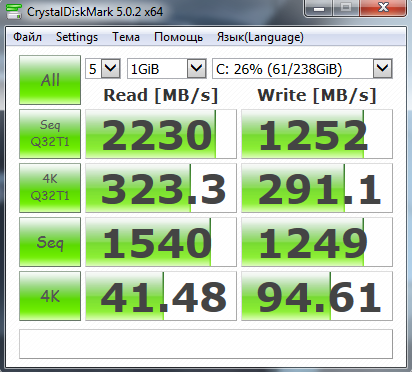у меня огромная разница, там где вы пишите мол на PCI-E 3.0 скорости вырастут - у меня нифига не вырастают до 2250(асус TUF x99 и самс 951) и остаются что-то в районе ваших значений, а вот 5-я версия данной программы всё показывает как надо. Да и вообще ваши предположения не верны, что мол на х99 всё как по маслу будет, нифига этот 951 не видится биосом(UEFI) моего асуса, появляется только после установки загрузчика на него.
