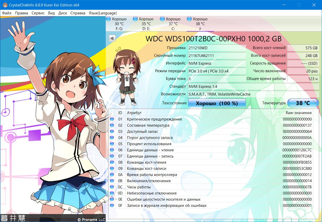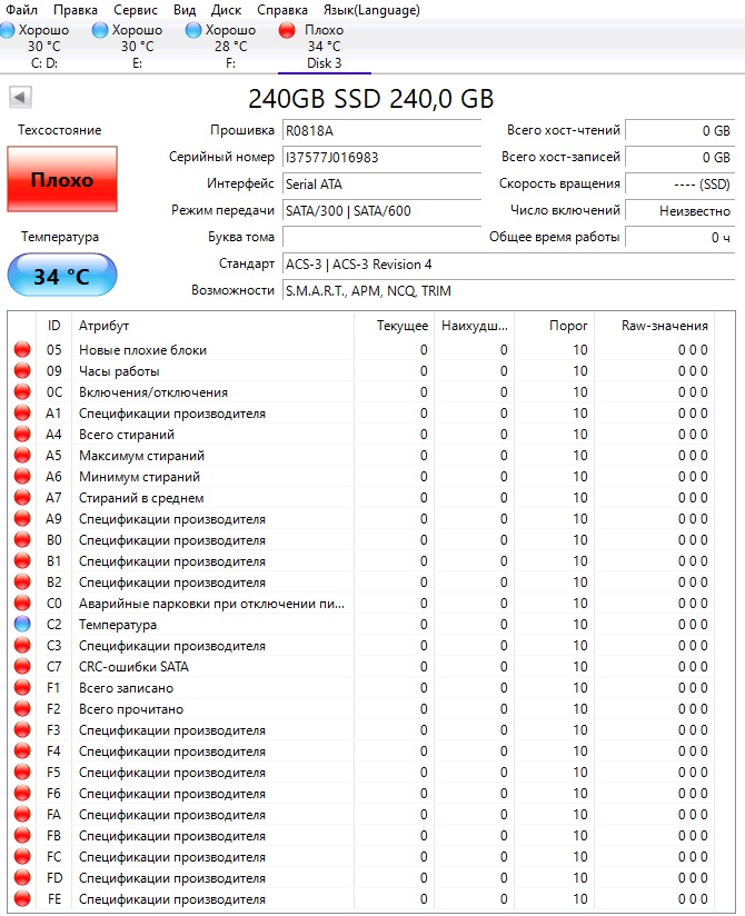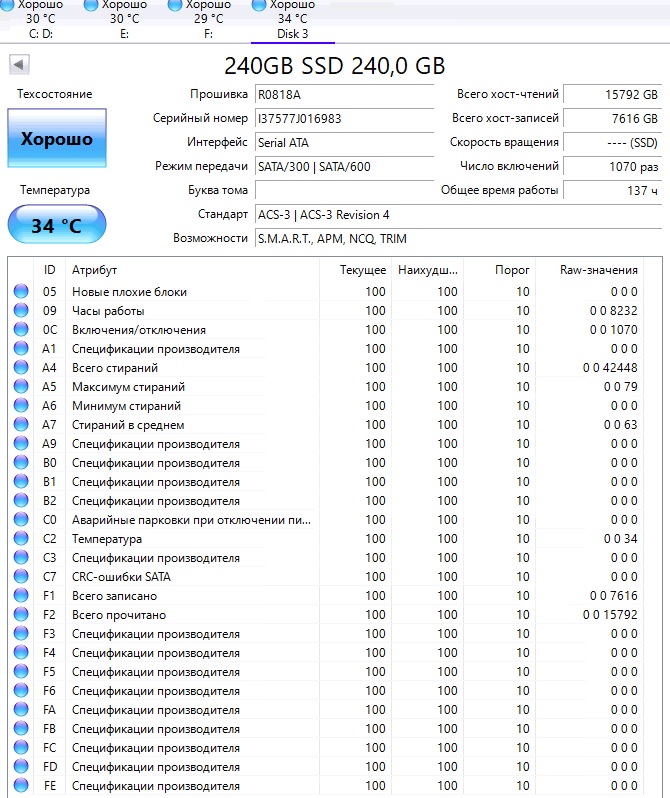 ========================================= Перед публикацией скриншотов Crystal Disk Info в меню "Сервис" >> "Дополнительно" >> "Raw-значения" выберите вариант "10 [DEC]". Это упростит восприятие информации. В меню "Сервис" ставьте галочку "Скрыть серийный номер".