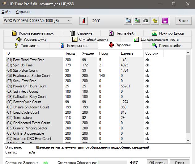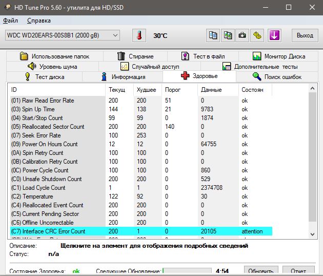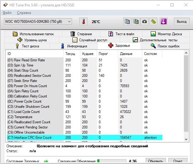 PS: так же в компе трудится новенький WD RED 4Tb, но у него наработка всего 100 часов, он ещё в начале своего трудного жизненного пути) Желаю всем долговечной работы ЖД