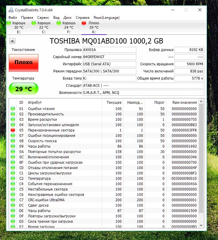 Вот видите, у вас тоже помирает диск, почему у ТС иначе должно быть. Жив и исправен не одно и тоже, комп виснущий тоже жив, разве им приятно пользоваться, но скоро может помереть.