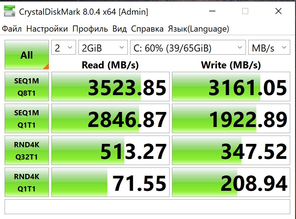 Добрый день! Возможно пишу не по теме и мне скорее в обсуждение файловых систем, если такая тема есть.. Хочу прояснить для себя ситуацию с Kingston KC2500 1TB NVMe M.2 2280 PCIe 3.0 x4 3D NAND TLC (SKC2500M8/1000G)h Ссд вставлен во внешний кейс, с заявленными характеристиками передачи данных в 970МБ/сек. И на ntfs через CrystalDiskMark он прекрасно выдает заявленные скорости. Выдает их даже и на exfat. А вот под макос, на макбукпро м1, через тот же самый провод, размеченный дисковой утилитой в apfs - больше 700 МБ/c не удается получить. Тестирую Blackmagic Disk Speed Test. В exfat скорость еще несколько ниже. Не пойму, куда копать? Проблема софта для тестирования, ос или файловой системы?
