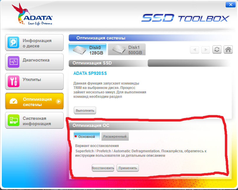 Ребят, может кто подскажет, что значит "Оптимизация системы" в программе SSD Toolbox??! Есть "основной" и "расширенный" режимы! Что это и как ним пользоваться ?!