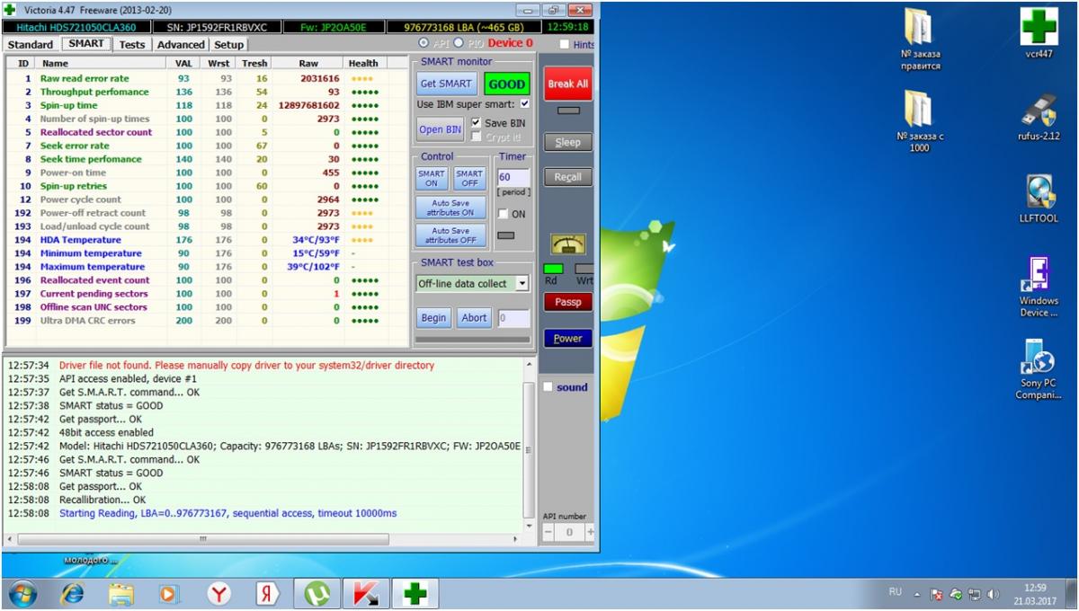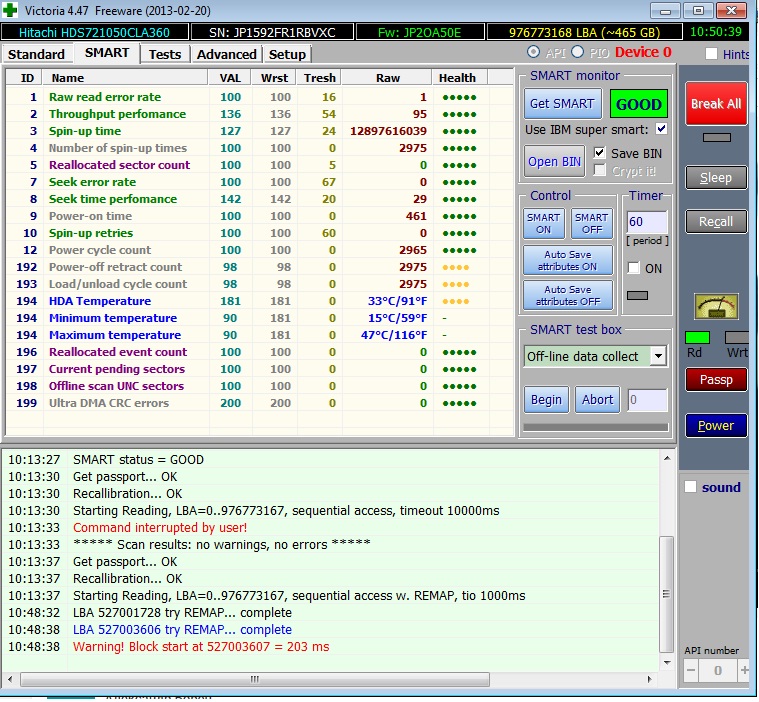 HGST HDN724040ALE640, аналогично, через 12-14 часов паркует-распарковывает головы, и тоже C0 и C1 увеличиваются одновременно. Самотестирование, что все ли хорошо, как я понял.