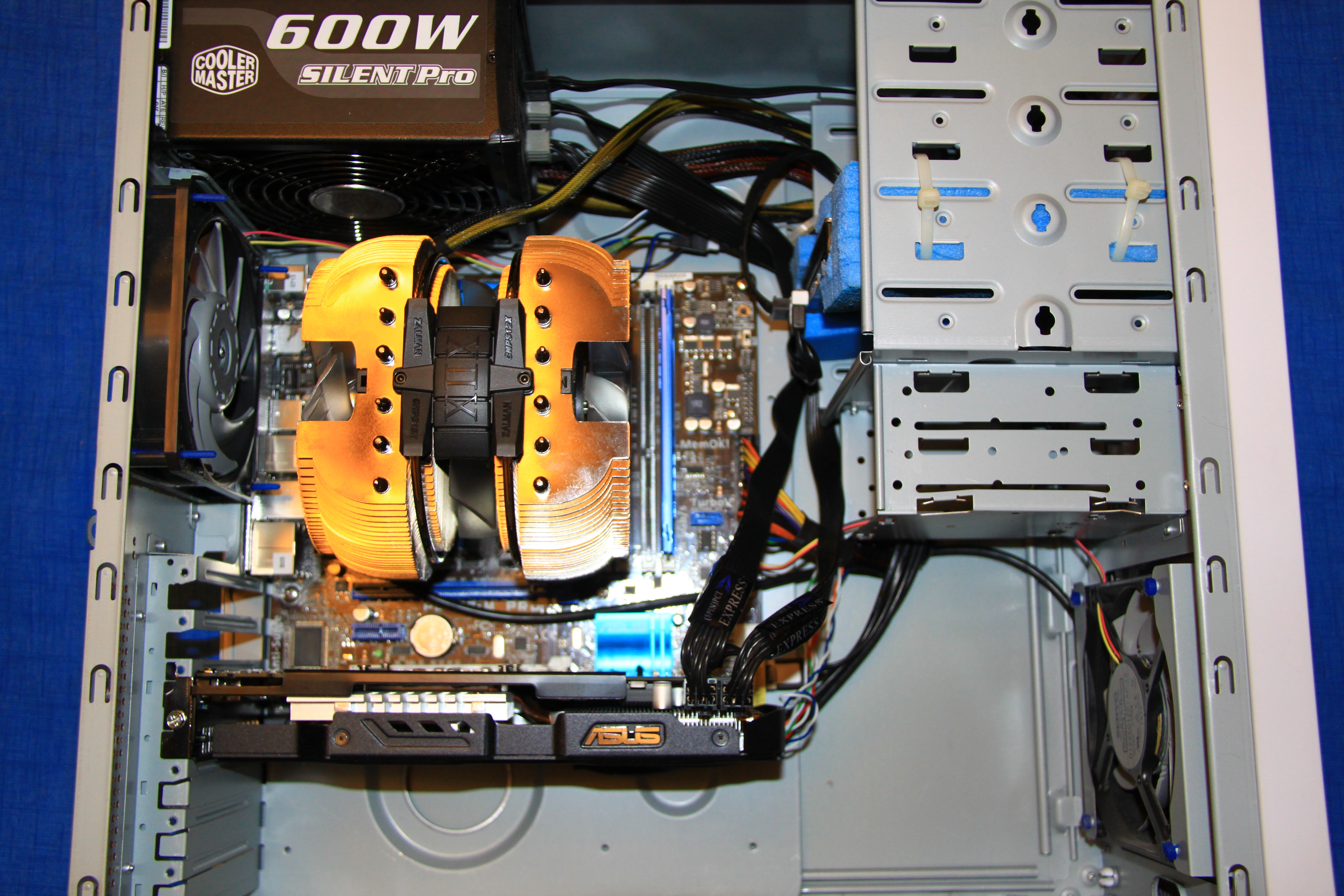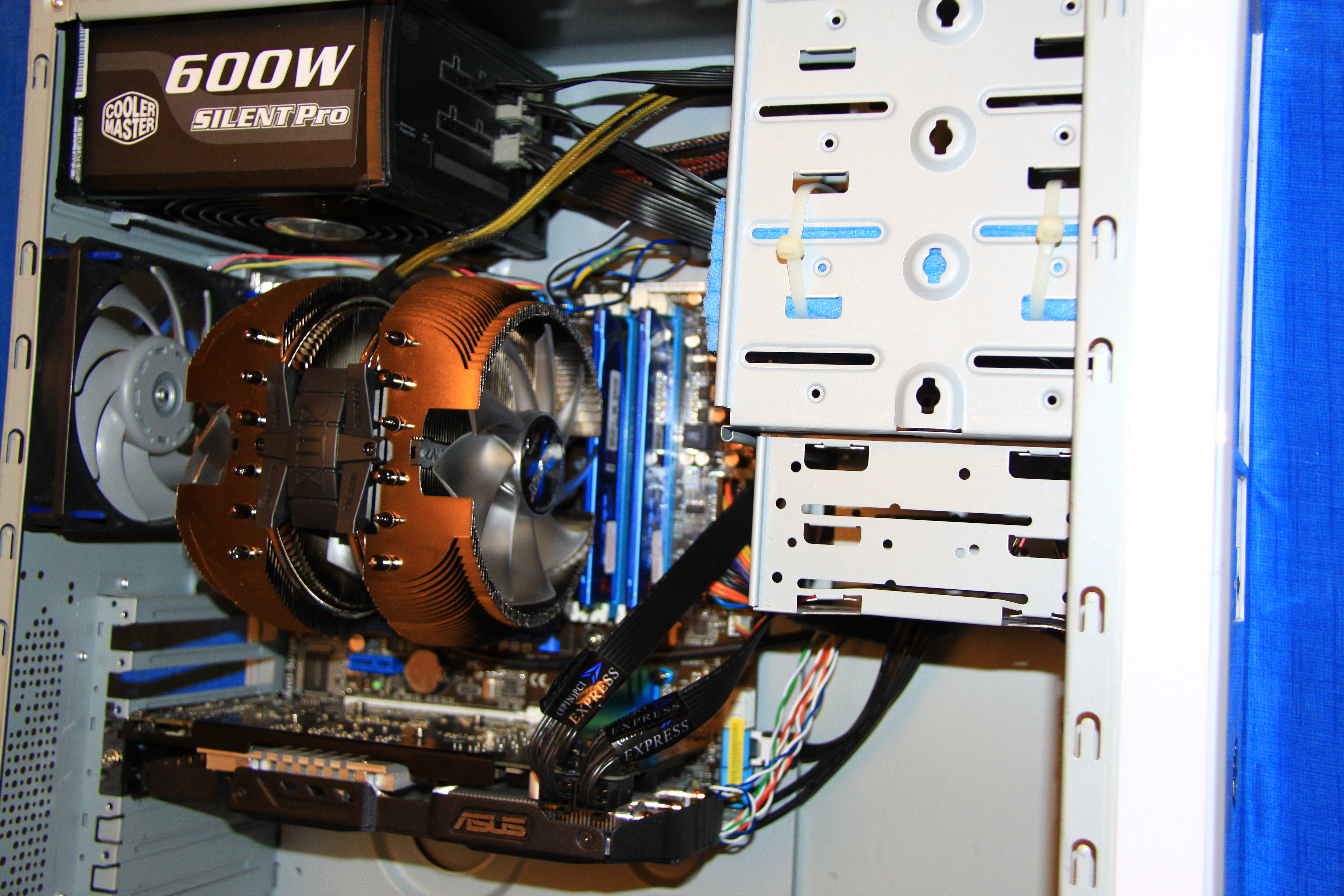 Блин, у него видюха в x4 слот вставлена. Где же ты такой идиотский кулер нашёл, что он первый слот PCIe перекрывает? У меня монстровый термалтейк 140мм шириной и нифига не перекрывает. Или это мать такая кривая, что у неё прц близко к слоту PCIe подвинут? У меня две матери есть с этим кулером и в обеих ничего не перекрывает и ещё место остаётся.