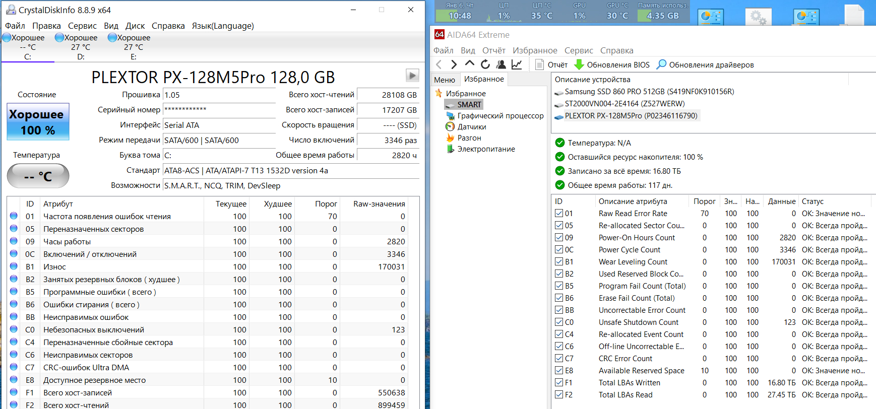 ========================================= Перед публикацией скриншотов Crystal Disk Info в меню "Сервис" >> "Дополнительно" >> "Raw-значения" выберите вариант "10 [DEC]". Это упростит восприятие информации. В меню "Сервис" ставьте галочку "Скрыть серийный номер".