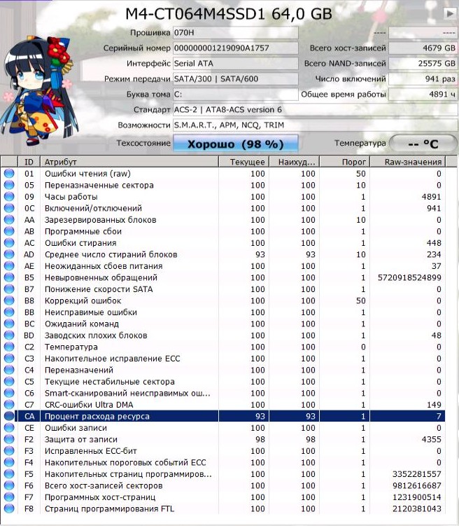 Ну и, а действительно ли есть такая необходимость часто считать объем записанного? Я первые несколько дней тоже мониторил, но потом забыл об этом и смотрю раз в месяц - на данный момент у меня записано чуть больше 1.5TB за 4-е месяца, что при "гарантированном" ресурсе флеша в 72TB дает примерно 16 лет, поэтому я просто использую диск по назначению и не забиваю голову всякой ерундой .