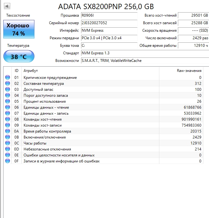 ========================================= Перед публикацией скриншотов Crystal Disk Info в меню "Сервис" >> "Дополнительно" >> "Raw-значения" выберите вариант "10 [DEC]". Это упростит восприятие информации. В меню "Сервис" ставьте галочку "Скрыть серийный номер".