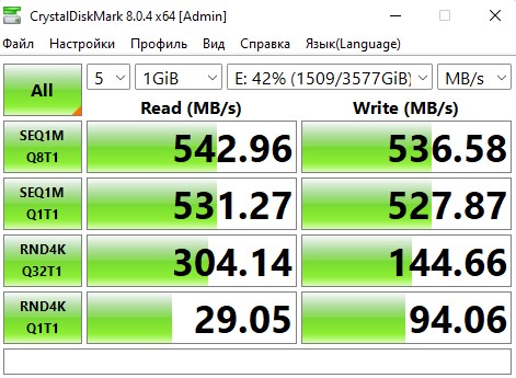 обычные цифры для sata ssd +- где то быстрее, где то медленнее.