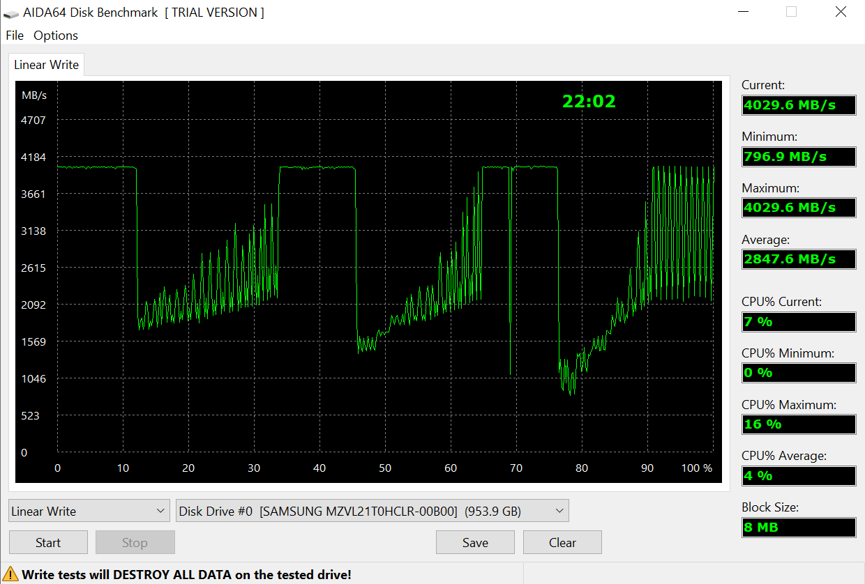 По состоянию на март 2024 года потребительские модели SSD изготавливаются на памяти TLC NAND и QLC NAND. MLC NAND можно найти лишь в единичных моделях (фактически - Samsung 970 Pro и Samsung 860 Pro) и фантастически редко - в отдельных партиях накопителей небольших брендов (которые обычно закупают память - какую повезёт подешевле). Отмечу отдельно: так же на MLC можно найти новые SSD на базе контроллера SM2246XT на Aliexpress - поверьте, оно того не стоит. SLC NAND - современных потребительских SSD давно нет. SSD на TLC и QLC NAND, в силу того, что эти типы памяти медленные (а внутри этих типов памяти есть ещё и производственные градации качества и скорости), не слишком рассчитаны на активные операции записи с большими объёмами данных - значительная часть быстродействия на записи в них обеспечивается алгоритмами SLC-кэширования.