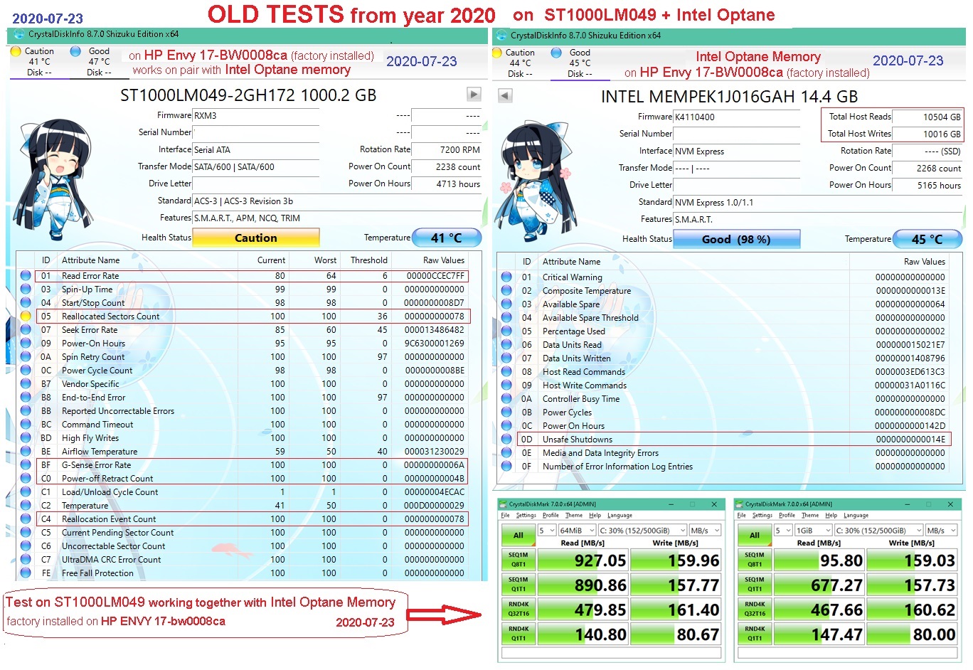 Интересно было узнать. В ноутбуке тот 16GB Optane SSD работал как надо, в паре с умирающим Seagate HDD, и Optane определялся как Intel MEMPEK1J015GAH 14.4 GB