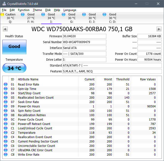 только два диска "врут" о своем возрасте: WD те-же 106K - это один набор дисков был... Seagate, заменивший сдохший WD, должен показывать ~90K... ранее уже спрашивал об этом, но ответа не получил...