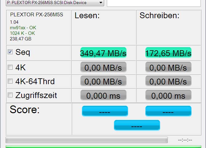 Всем привет. Купил px-256m5s. Вставил в Marvell® PCIe SATA6Gb/s controller (моя материнка). Биос контроллера при загрузки системы пишет что ssd определился и работает на скорости 6гбс. AS SSD Benchmark в Seq показывает скорость 360\160 (чтение\запись). В чём может быть проблема?