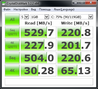 Добавлено спустя 22 минуты 19 секунд: Кстати, там плата старая AM3. Там же SATA 2. Не может там скорость 500Гб быть. А проседание на 4k q32t1 - это из-за отключенного AHCI, наверное.
