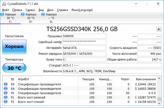 ========================================= Перед публикацией скриншотов Crystal Disk Info в меню "Сервис" >> "Дополнительно" >> "Raw-значения" выберите вариант "10 [DEC]". Это упростит восприятие информации. В меню "Сервис" ставьте галочку "Скрыть серийный номер".