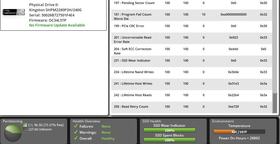 Silicon Motion идёт отдельно. У этих накопителей версия прошивки обычно выглядит как "*хххх#", где * - буква, обозначающая год ("O" соответствует 2015 году), а х - цифры обозначают конкретную дату сборки прошивки (0521 - 21 мая). # - буква, пока неясно. Прямого соответствия нет, но по косвенным признакам наблюдается несколько признаков: - конфигурации не пересекаются по версиям прошивок (например, O0730A, O0521A, O0803B5 - только Silicon Motion SM2256K + 16 nm TLC NAND SK Hynix; N0815B, O0919A - Silicon Motion SM2246EN + MLC NAND). - конфигурации на TLC NAND начались с прошивок вида O****.