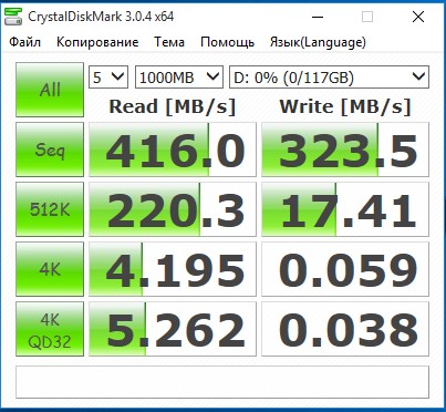 Прогнал тест на другом компьютере все норм, коробочной скорости все равно нет но хоть что то. Так что можете смело добавить в шапку. На двух компах результат один.
