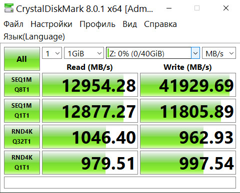 Гигабайт у Вас малыш 128ГБ вроде в принципе быстрее 1,5ГБ/с читать не может, и куда ж тогда падает там? А что у Вас за диск D:? Это Raid0? И ещё интересно - какой софт Вы используете под рамдиск? Я тоже 40ГБ себе делал, но вроде бы что между 15 и 25 обычно было, у Вас же очень быстрая запись в верхней строке (T-Topology с 4мы модулями памяти? Или HEDT-система?), но при этом не очень быстрое чтение. Теперь по теме: деградация по чтению обычно у WD SSDшек (а значит и у SanDisk) заметна, у Крусиалов вроде явной проблема точно не была, да и на Вашей Барракуде 120 быть не должна. Температуры у Вас вроде в норме. Конечно можно бы было освежить весь объём в HDSentinel, но хвататься за костыли не хочется преждевременно. У меня на хваленной Фаеркуде 530 (чтение в бенчах 7300+) полежавшие данные читаются с ~6000, что ещё более чем ок. Копирование с одной Gen4 SSD на другую к меня как правило с 6ГБ/с сползает до 5,5ГБ/с, но если кидать 200-300ГБ в зависимости откуда-куда бывало,что почти до 5ГБ/с опускалось. В тупом виндусовском проводнике скорости как правило в районе 3,2-3,3 ГБ/с, поэтому возможно деградацию на чтении я покамест просто не замечаю, но у Вас более чем существенная налицо. В крайнем случае бекапте данные и сделайте P5 Secure Erase (или "Sanitize Drive" в кривом софте от Крусиала).