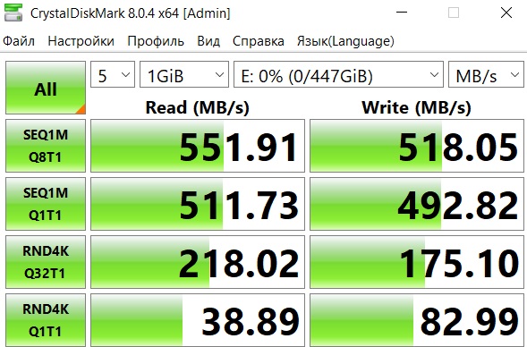 .... Далее дал диску нагрузку. Залил на него папку с коллекцией музыки, размером 851 гб. Папка с музыкой находилась на диске Samsung 970 Evo Plus. Засек время - получилось 31 мин 29 секунд. Скорость варьировалась в районе 470-490мб/сек. Как по мне, отличный результат. Где то на 40% копирования скорость кратковременно упала до 50 мбит/с, но это продолжалось с полминуты, затем график выровнялся и на одном уровне был. Мониторил температуру диска - максимум был зафиксирован на отметке 55 гр. Ранее с эту папку с музыкой переносил с жесткого диска на Samsung 970 Evo Plus. Это заняло добрые 2.5 часа... Собственно, наконец то избавился от жд. Теперь пека бесшумный стал)
