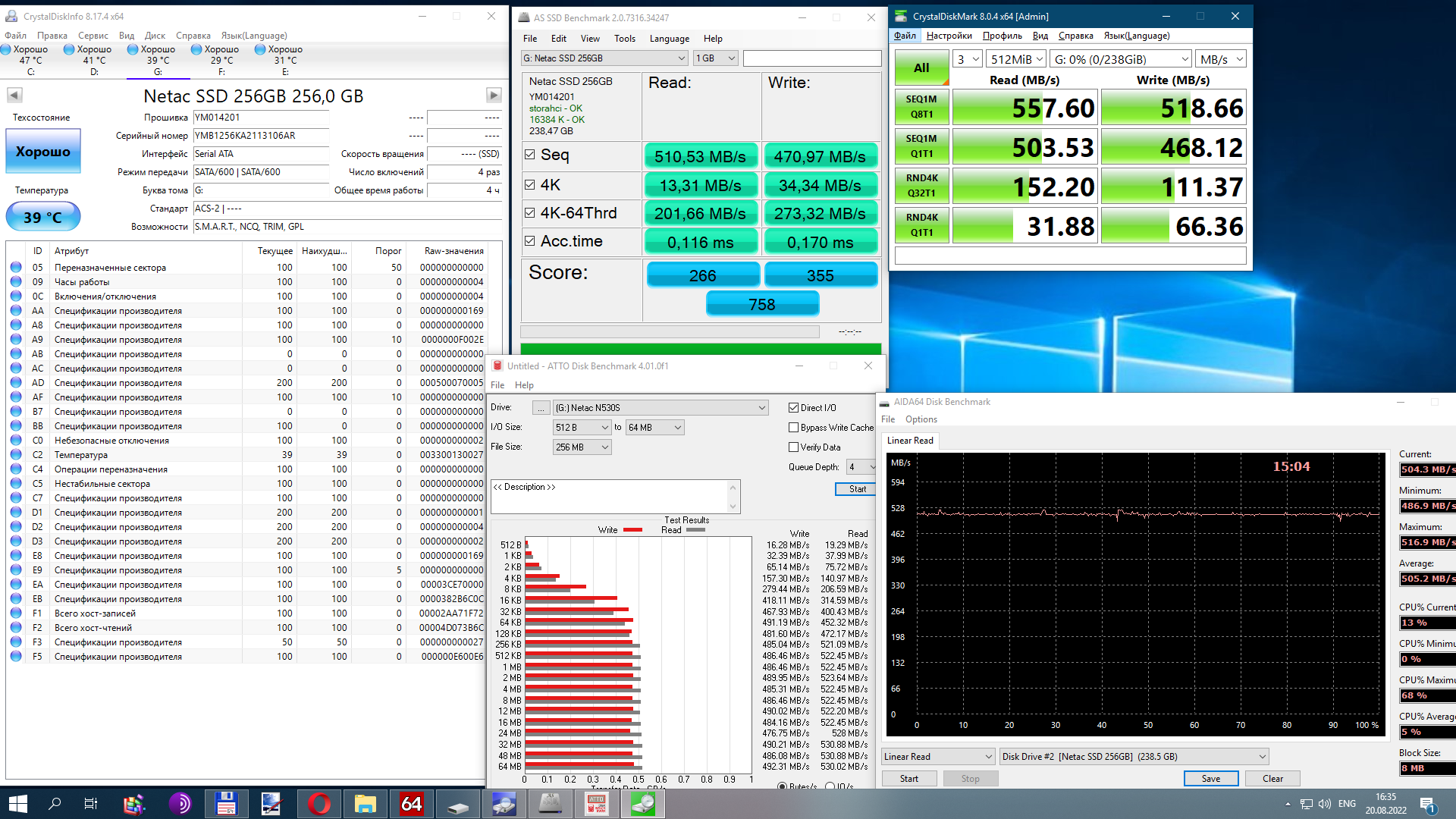 P.S.: нашёл старые скрины разных бенчей, вот стандартные прогоны CDM и AS-SSD: