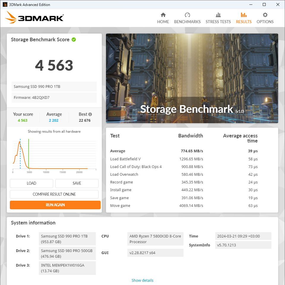 Samsung SSD 990 Pro 1TB в 3DMark Storage Benchmark