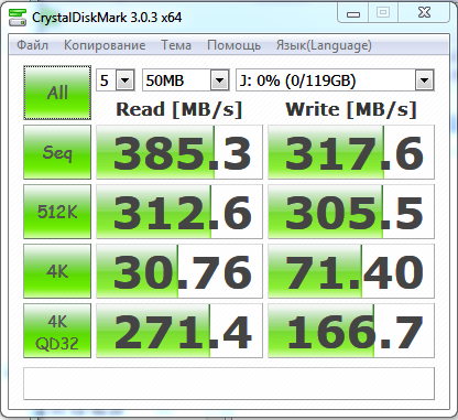 Купил сегодня 128Gb Plextor M5P, подключил к SATA 3, в биосе поставил AHCI, форматнул в NTFS 4кб кластер, обновил прошивку до 1.06, включаю что бы проверить скорость в CrystalDiscMark и вот что получается: