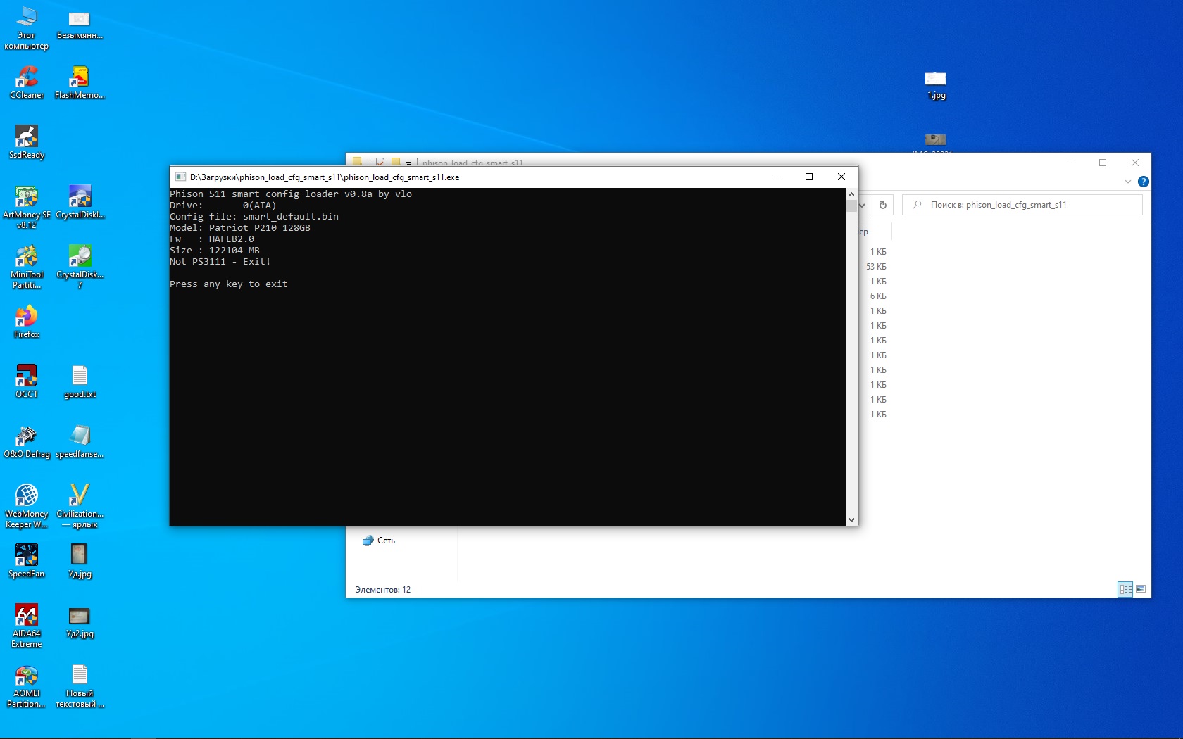Народ прошу помощи. Хотел расширить Смарт у своего Patriot p210 на 128 ГБ. Он выполнен на PS3111 , но софтина phison_load_cfg_smart_s11 ругается на отсутствие контроллера. Что делать? И подскажите какой же все же размер SLC кэша?