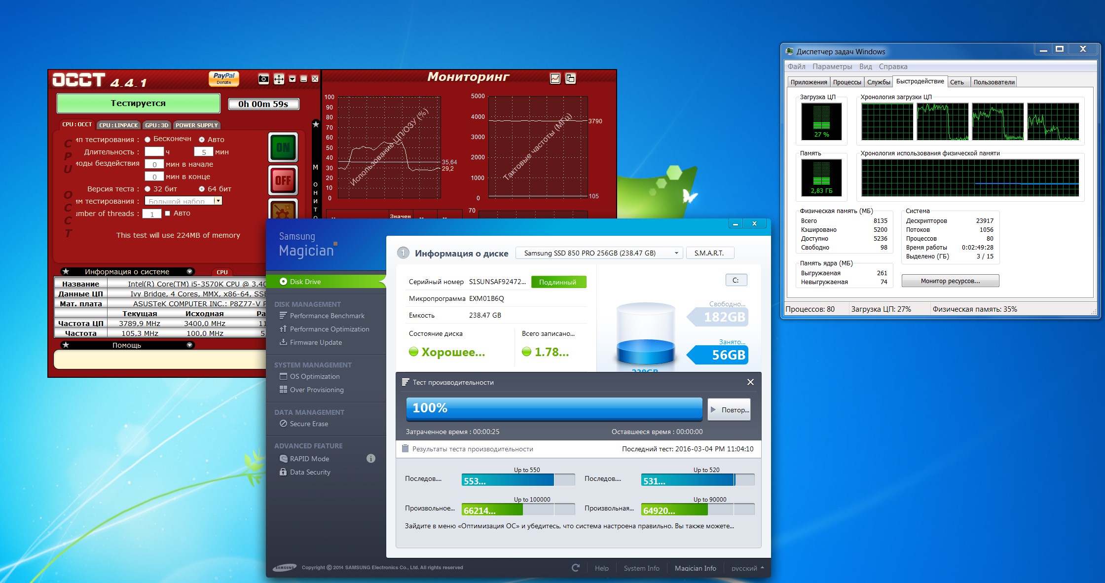 MalexiusAvenger80 Спасибо за советы. Покурил обзоры и тему, глянул также барахолку и нашел там очень занятный экземпляр Samsung SSD SM841 256Gb всего за 1850грн (~ 70$), который, судя по обзору является OEM версией Samsung SSD 840 Pro для сборщиков с идентичной аппаратной начинкой. Результаты тестов здесь Статистика скоростных характеристик SSD #13616720 Samsung SSD SM841 256Gb установлю в десктоп, а текущий системный Samsung SSD 840 Pro 128Gb уйдет скорее всего в ноут.