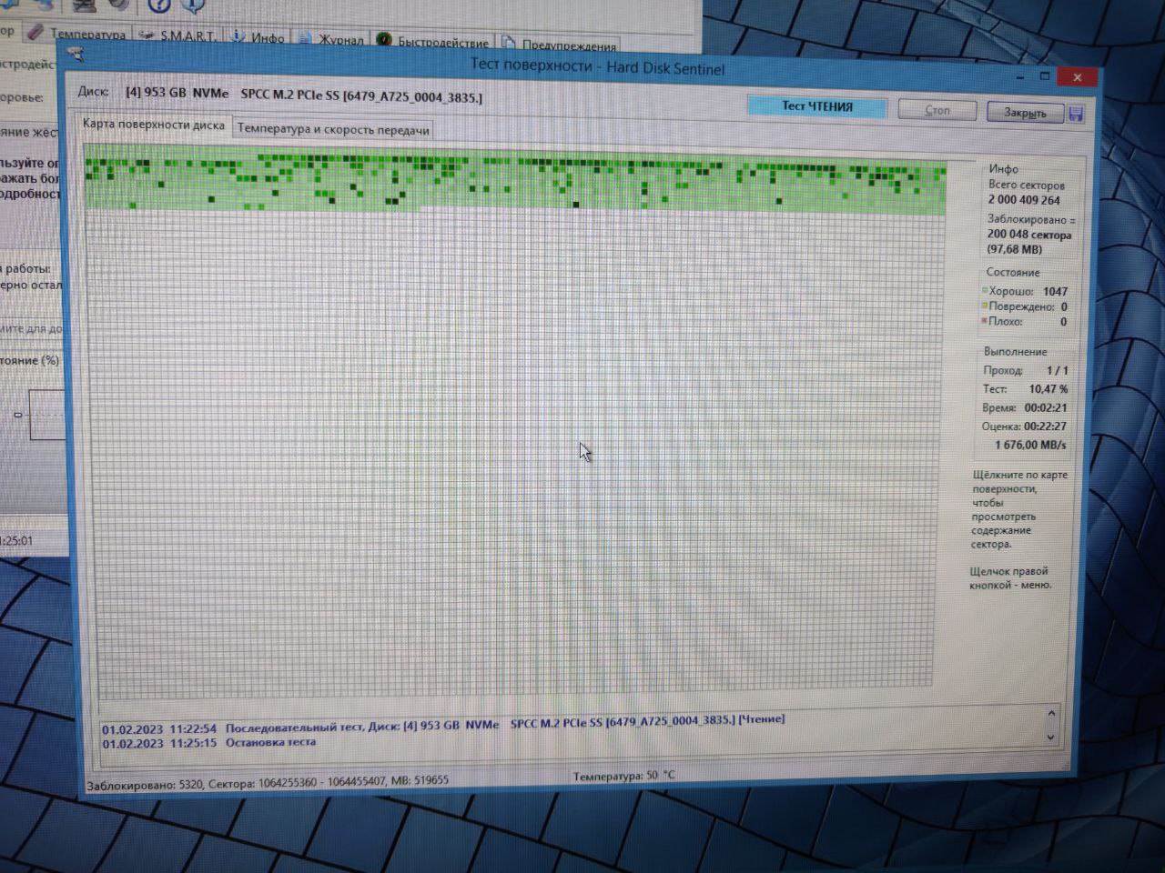 Добавлено спустя 16 минут 35 секунд: Кста пару страниц назад тут поднимался вопрос о чтении данных с дисков которые долго используются. Вот две фотки диска используемого с года 19 или начала 20 под системой (смарт которого выше) и для установки игр. Первая фотка тест чтения диска до перезаписи бекапа (первая строчка "красивая") так как на диск уже запускался тест записи