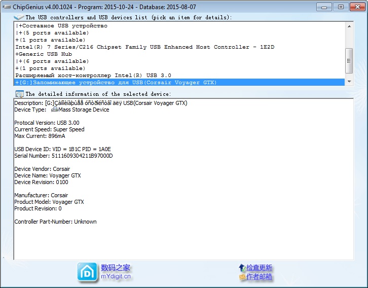 Купил всё-таки Corsair Voyager GTX 128GB (CMFVYGTX3B-128GB). Volume: G: Controller: Unknown Possible Memory Chip(s): Not available VID: 1B1C PID: 1A0E Manufacturer: Corsair Product: Voyager GTX Query Vendor ID: Corsair Query Product ID: Voyager GTX Query Product Revision: 0 Physical Disk Capacity: 128035676160 Bytes Windows Disk Capacity: 128035643392 Bytes Internal Tags: AB4F-QAHJ File System: NTFS Relative Offset: 31 KB USB Version: 3.00 Declared Power: 896 mA ContMeas ID: 7625-06-00 Microsoft Windows 7 SP1 x64 Build 7601 ------------------------------------ http://www.antspec.com/usbflashinfo/ Program Version: 8.7.0.597