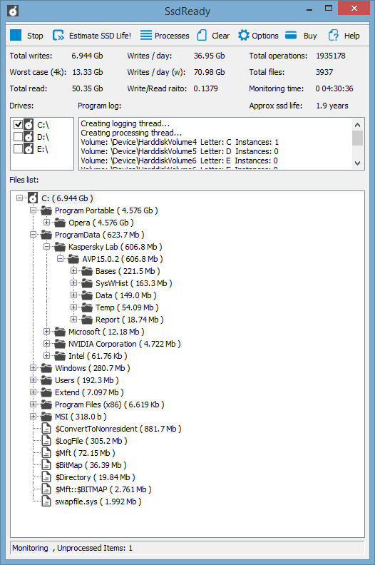 ssd plextor px-m5s 256Gb, может кто-нибудь прояснить по показателям? прогнозируемое время жизни как-то маловато и гигабайт в день что-то как-то совсем много показывает. кстати opera показывает приличный вес, но в списке нет такого объёма и в свойствах самой папки намного меньше..так понял это просто кэша столько было? в настройках ярлыка кэш браузера вообще отключен. получается запись была всё равно и на ссд тоже?