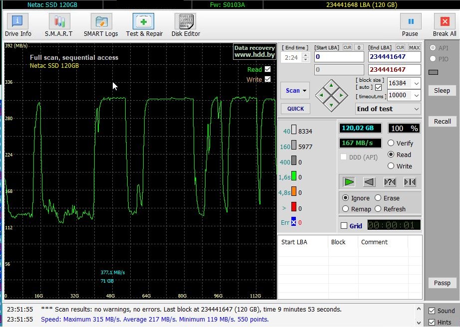 У меня кстати уже больше года наверное лежит SSD на Тошибовской 64L памяти Plex M8VC. Жаль не делал тест поверхности перед тем как убрал его. Можно тоже подключить и прогнать surface test виктории. Не ради точности, хотя-бы ради интереса. Есть ли какие-то заметные провалы. Надо бы только вспомнить когда он был отключен точно, но не менее года я так думаю .