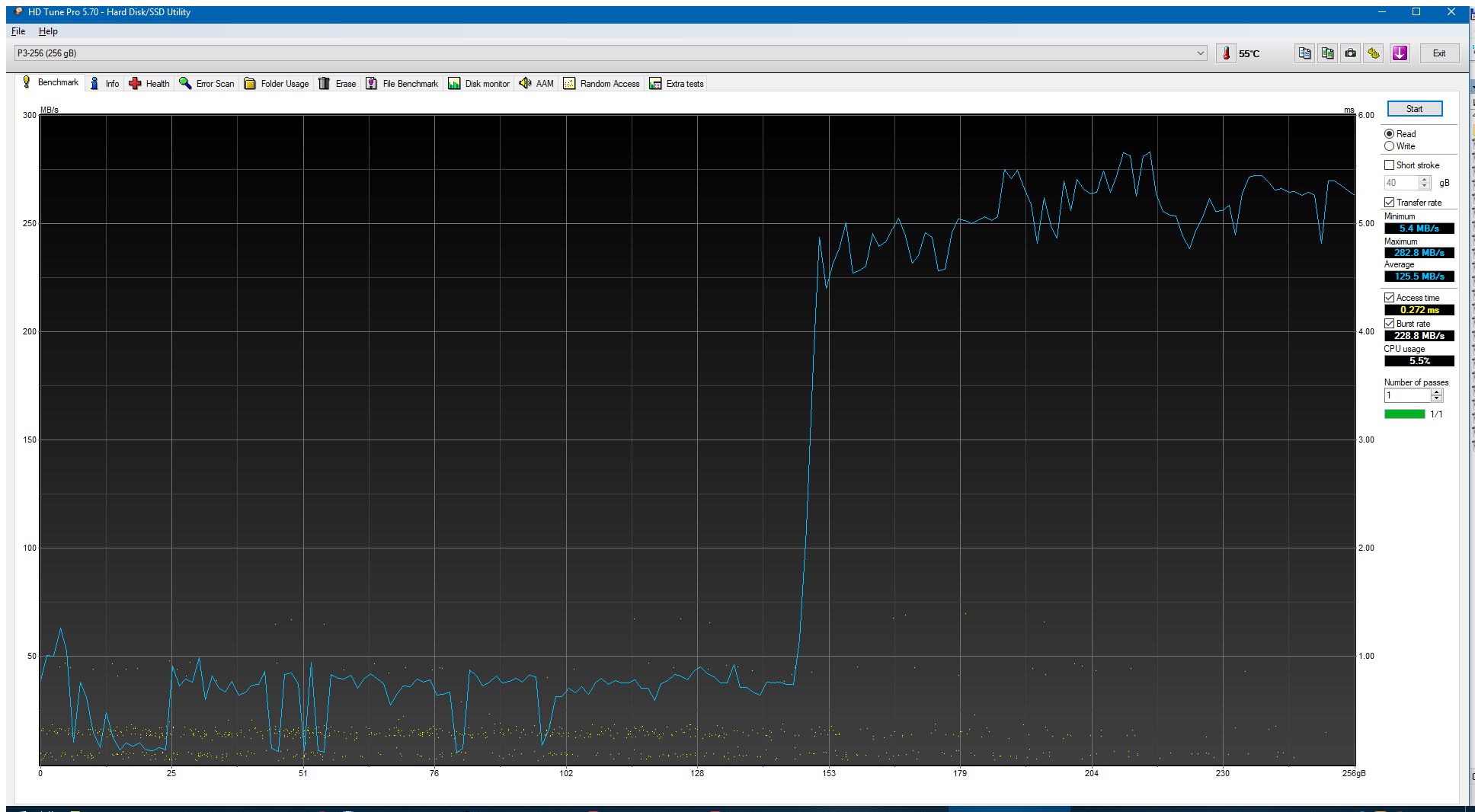 Величина этого кэша бывает разная: фиксированная (определённый процент объёма накопителя), динамическая (зависит от свободного места) и комбинация первых двух. У малообъёмных (120-256 Гбайт) SSD, особенно самых дешёвых, SLC-кэш порой бывает всего 1-2 Гбайт. Если объём разом отправленных на запись на накопитель данных превышает эту величину, то, после исчерпания SLC-кэша, мы можем наблюдать резкое падение скорости записи, порой до совсем драматических 10-20 Мбайт/с (не опечатка, ёмкие 480-512 Гбайт PCIe (которым "положено" быть быстрее SATA) на TLC/QLC могут "проседать" до 30-90 Мбайт/с). Скорость падает не навсегда: в последующем микропрограмма накопителя перезаписывает данные, записанные в SLC-режиме - быстрота восстановления скорости записи зависит, в т.ч., от скорости используемого массива памяти в накопителе. Вполне типична ситуация, когда при запуске, например, Crystal Disk Mark мы видим блестящие показатели в первом, втором, иногда третьем тесте, а в четвёртом - провал. Происходит это потому что из-за медленной памяти микропрограмма просто не успевает произвести расчистку. Поэтому современные малообъёмные SSD - это скорее для старых систем (ПК/ноутбуков/нетбуков - неважно) и систем класса "печатная машинка", где большое количество данных на запись возникать не будет вовсе или столь редко, что этим можно пренебречь. Выше я говорил о том, что SLC-кэширование может быть разным. У некоторых моделей оно настроено так, что под запись в SLC-режиме задействуется всё свободное на текущий момент пространство. Например, если такой накопитель объёмом 240 Гбайт занят на половину объёма, то под запись выделяется 120 Гбайт и этот накопитель сможет принять до 40 Гбайт (если он на TLC NAND) и до 30 Гбайт (если он на QLC NAND) на высокой скорости. Но этим не стоит слишком злоупотреблять (данные всё равно переносятся потом из SLC-буфера, фактически мы получаем лишние циклы перезаписи).