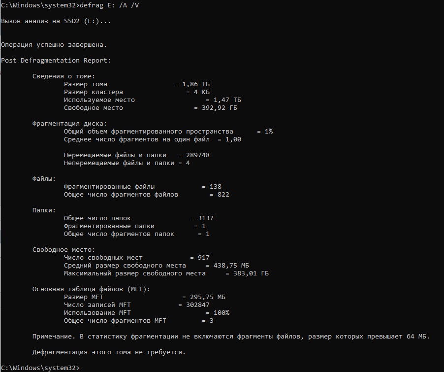 defrag буква: /d /u Немного подождать. defrag буква: /a /v Опять показать вывод.