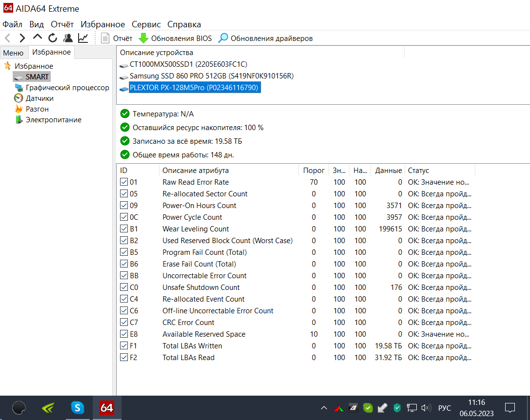 8. Различные оценивалки "здоровья накопителя" показывают теорию, предугадать проблемы они не могут. Например, Plextor M7V даже с протёртым до предела флешем будут оцениваться как "здоровый".