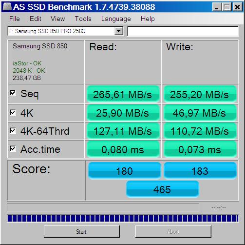 Наверно это не корректно, так как тесты были сделаны хоть и на том же железе, но под XP 32-bit и в AS SSD 1.7.4xxx. Правда версия iaStor всё та же - 11.2.0.1006. Но всё же, вот: